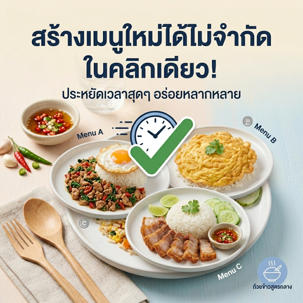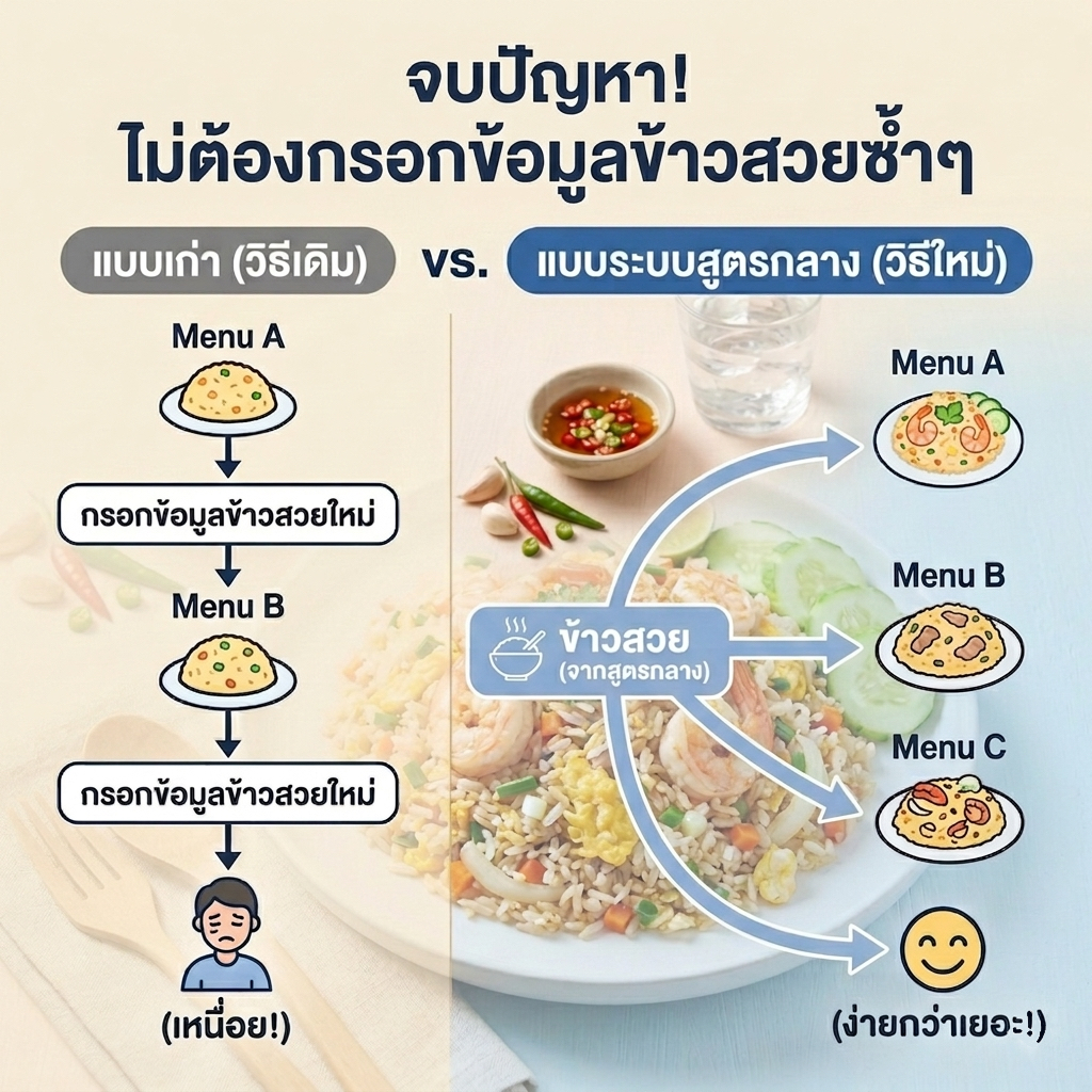 🍚 "สร้างครั้งเดียว ใช้ได้ทุกเมนู" ไม่ต้องเสียเวลากรอกข้อมูลเดิมซ้ำๆ เมื่อเพิ่มเมนูใหม่