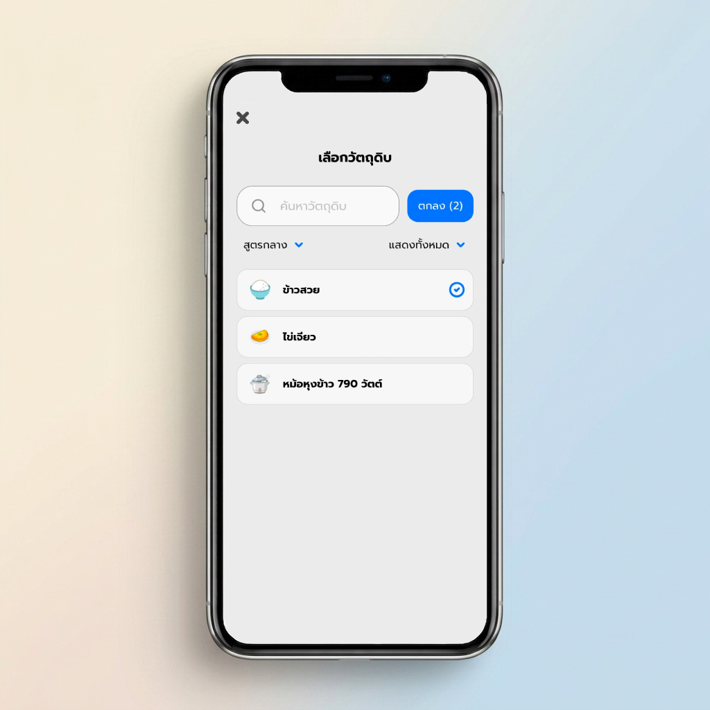 จะสร้างกี่สิบเมนูใหม่ แค่กดเลือก "ข้าวสวย" จากสูตรกลาง... ต้นทุนจะคำนวณให้เองตามน้ำหนักจริง ไม่ต้องกรอกใหม่ให้ปวดหัว