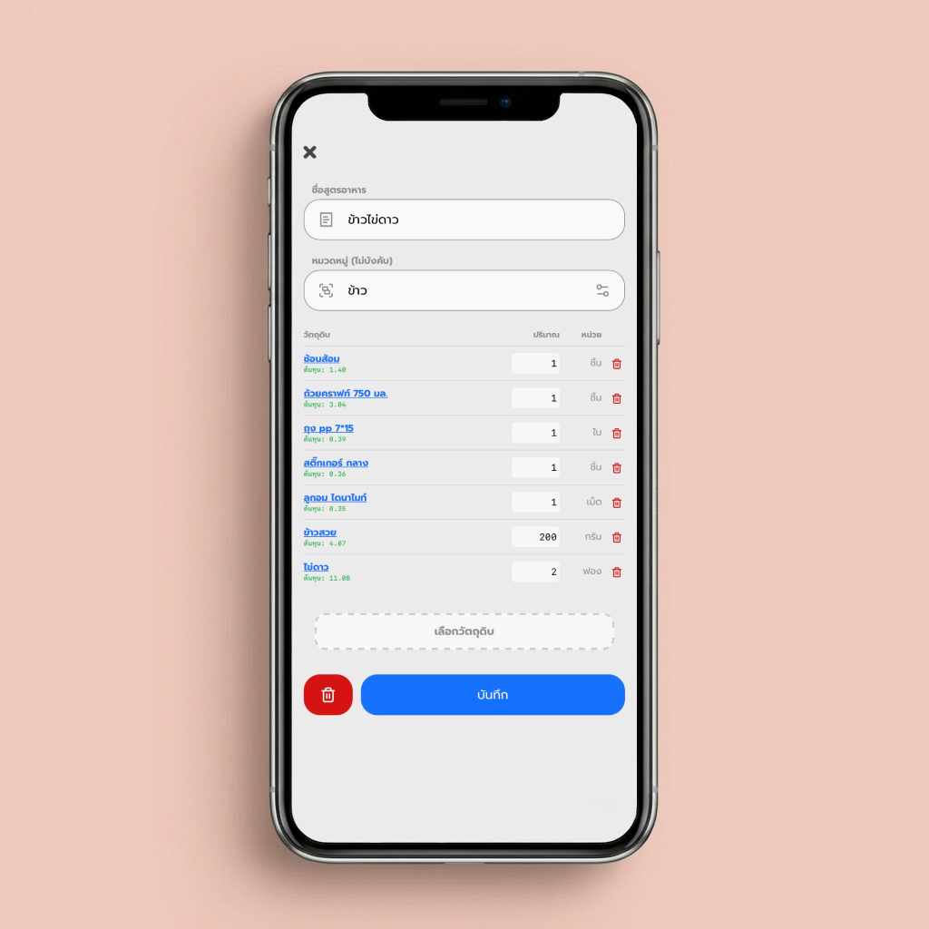 ใส่ต้นทุนได้ลึกถึงค่าถุง ค่าช้อนส้อม เพื่อให้เห็นกำไรสุทธิที่แท้จริง