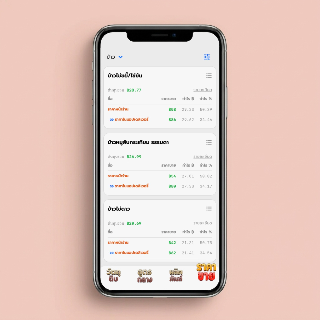 ผลลัพธ์ที่ได้! ราคาหน้าร้าน vs เดลิเวอรี่ จะต่างกันแค่ไหน แต่กำไรเป็น 'บาท' ยังได้เท่าเดิม